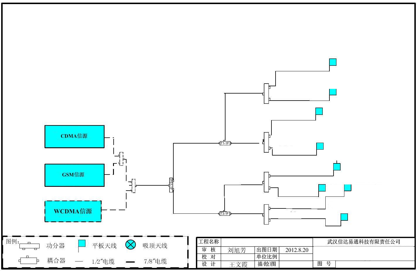 該室內信號分布系統為GSM,CDMA,WCDMA覆蓋,GSM包括移動及聯通2G信號,WCDMA為聯通3G信號。