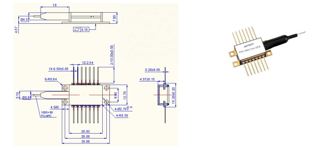 1.采用進口DFB芯片,內置半導體制冷器(TEC)和熱敏電阻(NTC)